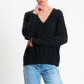 Tensione in-Maglia scollo v 100% LANA MERINO - nero
