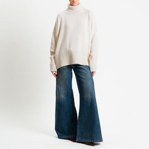 Motel-Maglia collo alto a scatola misto lana - Bianco