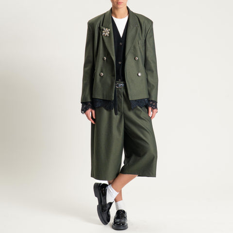 Motel- Giacca gessata doppiopetto con pizzo - militare