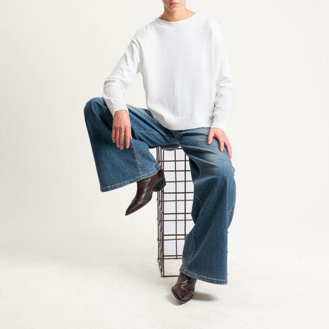 Zeroassoluto-Maglia girocollo spacco dietro - panna