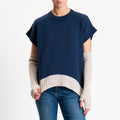 Tensione in-Gilet stondato con manicotti misto lana - blu/casha