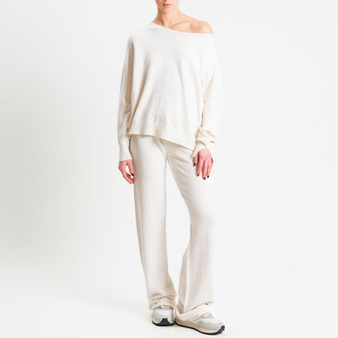 Tensione in-Completo maglia scollo barca + pantalone - crema