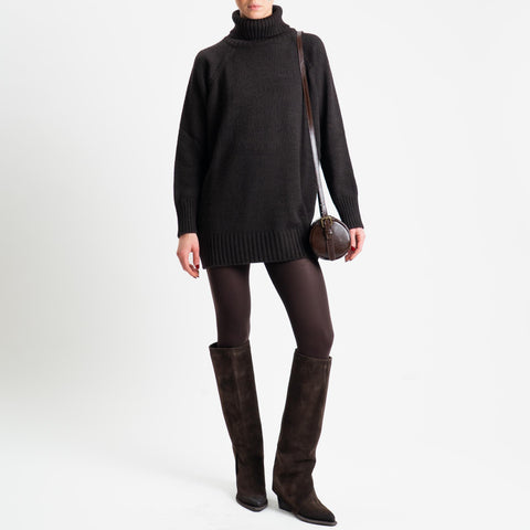 Tensione in-Maxi maglia collo alto misto lana - moro