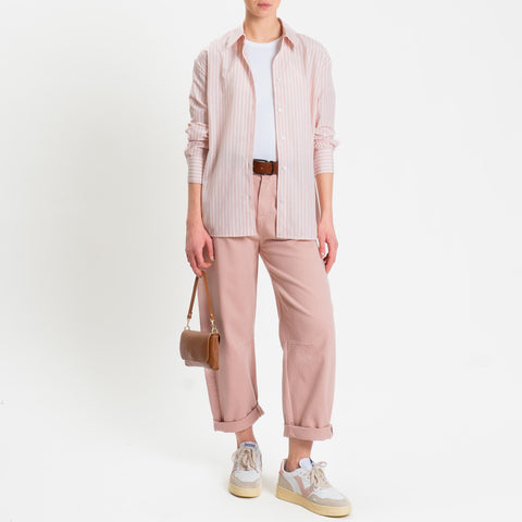 Tensione in-Pantalone barrel cotone elasticizzato elastico dietro - rosa