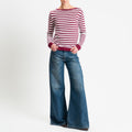 Tensione in-Maglia righe scollo barca - bordeaux/latte
