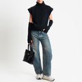 Tensione in-Gilet collo alto misto lana con manicotti - Nero
