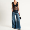 Motel-Top asimmetrico in pizzo - Nero