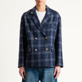 Tensione in-Giacca check doppiopetto misto lana - blu/latte/vino