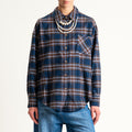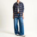 Tensione in-Camicia check flanella con collana - blu/cuoio/latte