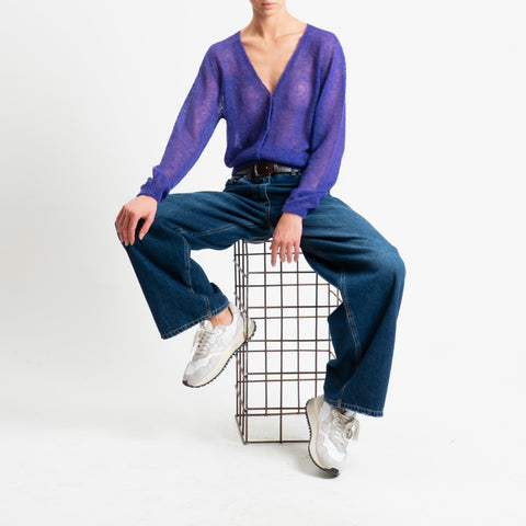 Tensione in-Cardigan scollo v mohair garzato - viola