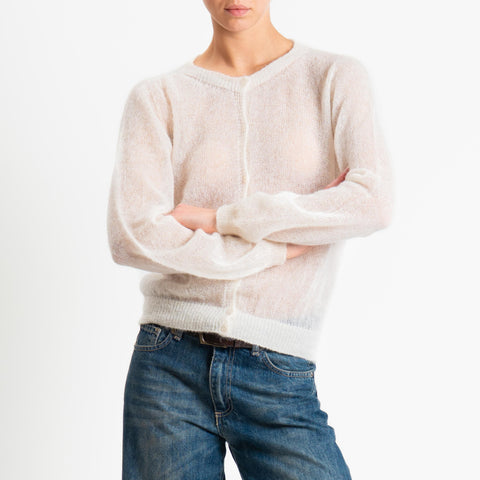 Tensione in-Cardigan rebecchina girocollo mohair garzato - latte