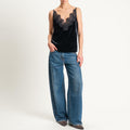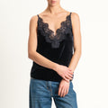 Tensione in-Top velluto ciniglia con pizzo - nero