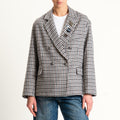 Tensione in-Giacca quadri doppiopetto misto lana - latte/grigio/moro