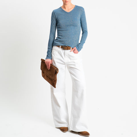 Zeroassoluto-T-shirt scollo v con lurex - avio