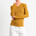 Zeroassoluto-T-shirt scollo v con lurex - Senape