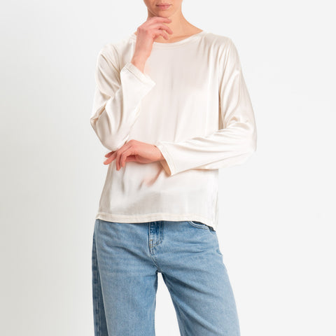 Tensione in-Blusa satin elasticizzata manica lunga - burro