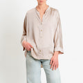 Motel-Camicia collo coreana over in satin - avena