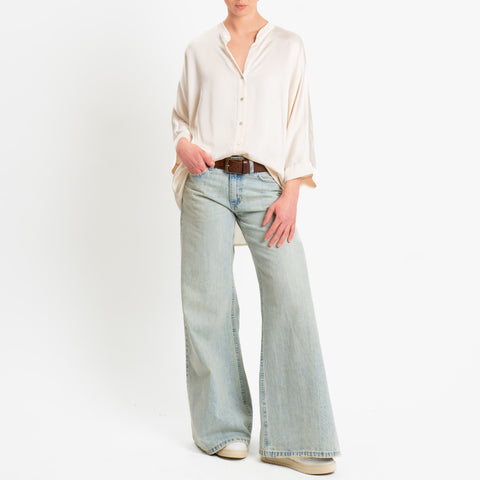 Motel-Camicia collo coreana over in satin - burro