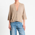 Zeroassoluto-Cardigan scollo v manica 3/4 - beige