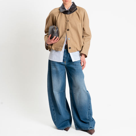 Tensione in-Bomber doppio tessuto collo similpelle - cammello